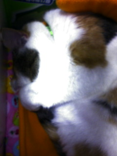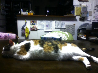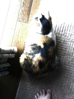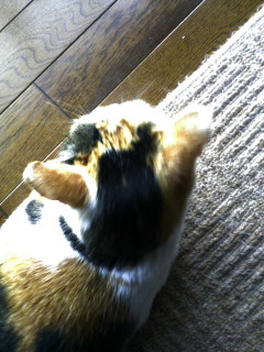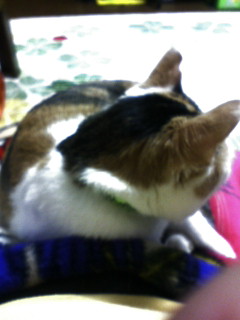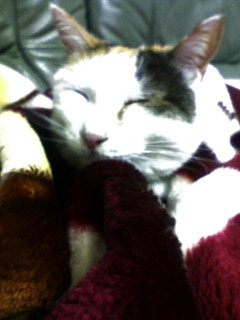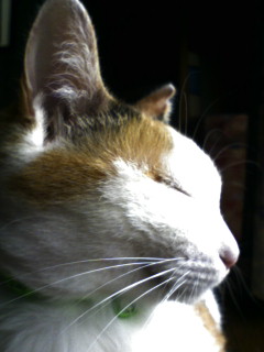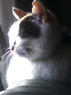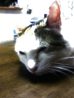 帰宅後、下着でソファに座ると膝を占拠されます。動こうとすると、ニャァって言うから、動けないorz 何て策略家なんだっ!!!!!って、ただ膝の上の方が暖かいだけだよね?そう、私は暑がりなのです(苦笑 でも、後頭部が可愛いぐらいにまん丸なので、許します。あーあ、許してばっかだ。